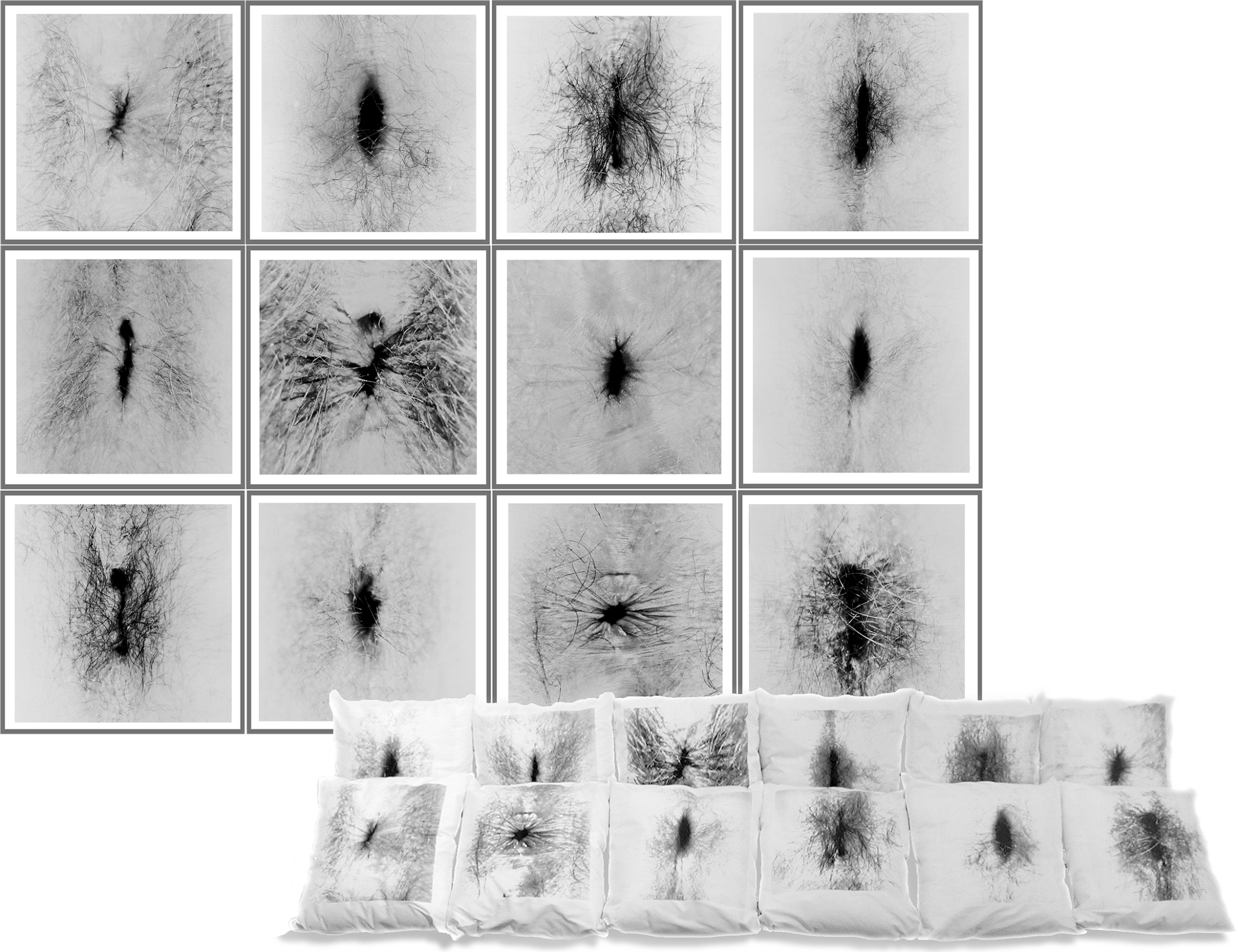 _ „A Tender Penetration“ 12-part photographic work. To be seen are twelve black/white photos of assholes. When I saw these photos for the first time, I had to ask myself if an anus can function as a portrait. What do these assholes tell us about ourselves – do they tell us anything? Or are Monika Golla’s anal orifices more a kind of topography – such as we know from the works of Bernd and Hilla Becher. In this work it is about detail photographs which remove the usual, meaning the normal frame of reference, or about combinations which transform their natural relationship to the surroundings. Seen thus shame-and pornography – are unambiguously a question of context or perspective." (Gérard A. Goodrow)